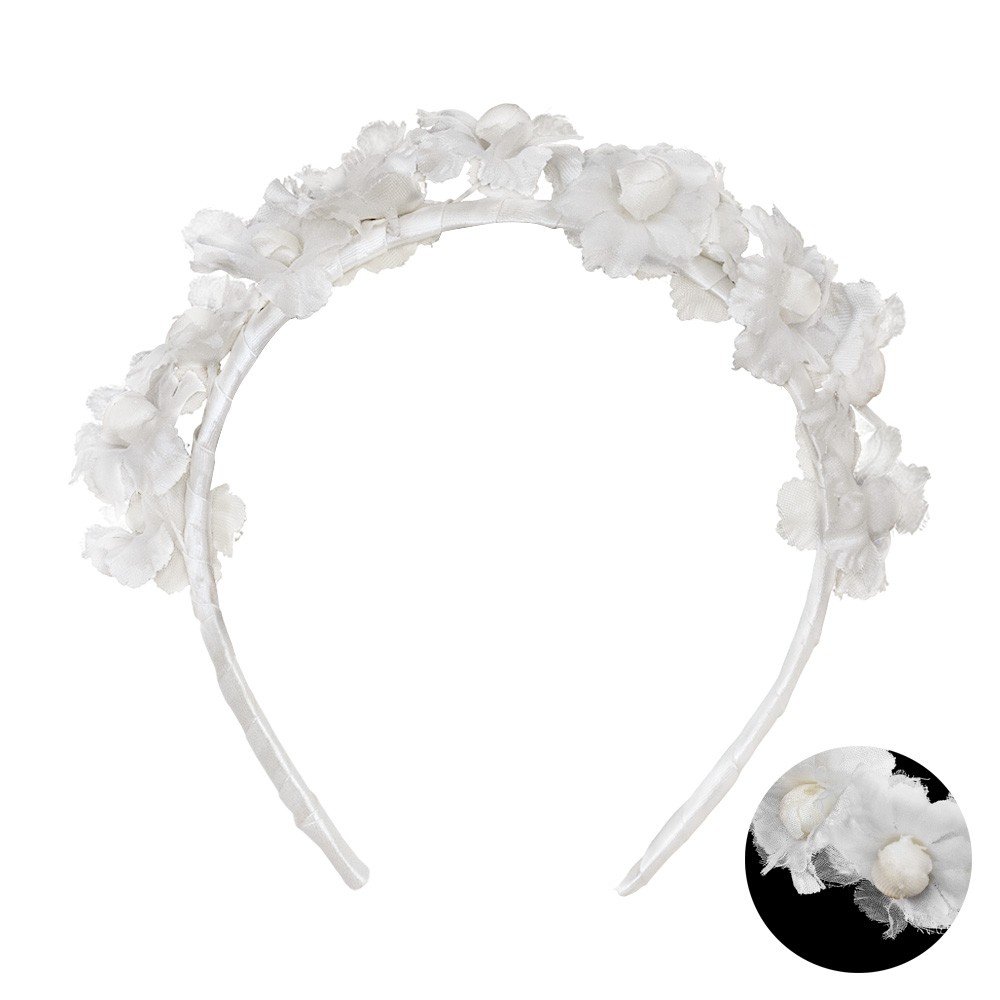 Composta da 7 fiori e nastrini bianchi che pendono sul retro del capo.
