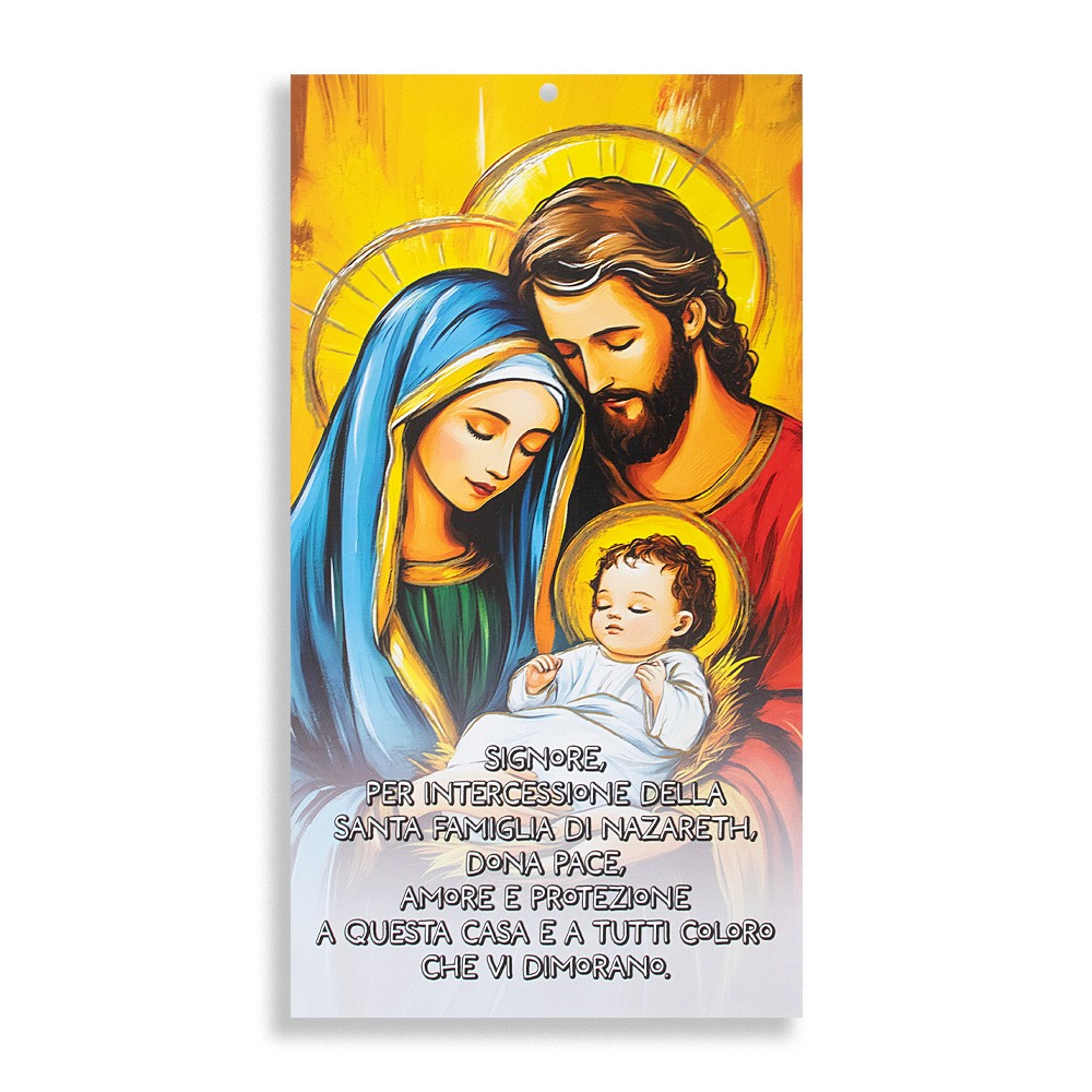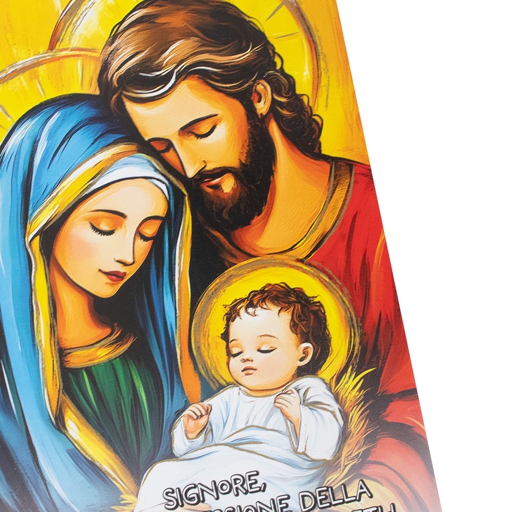 Novità 2026: Cartoncino ricordo per la Benedizione della Famiglia, realizzato in cartoncino di ottima qualità con immagine stampata e raffigurante la Sacra Famiglia di Nazareth.