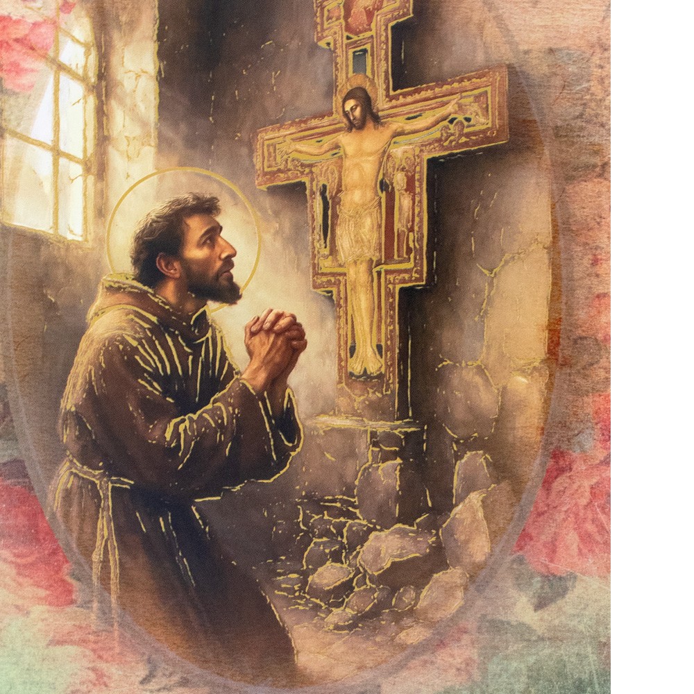Benedizione della Famiglia, realizzata su cartoncino di qualità con immagine stampata e raffigurante San Francesco sul fronte.