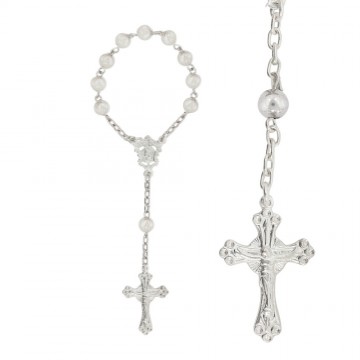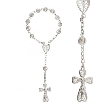 Decina rosario lunga circa 12,5 cm, con grani tondi da 0,4 cm in raffinata lavorazione a filigrana.
