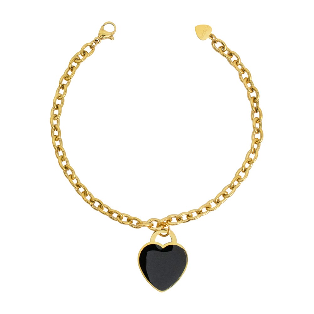 Bracciale con cristalli neri e charm cuore con zirconi, della collezione Amen gioielli.
