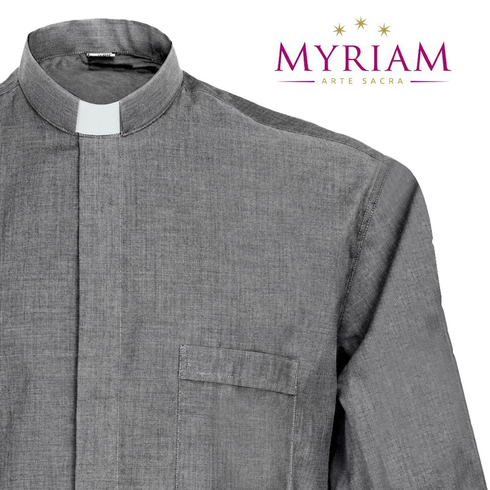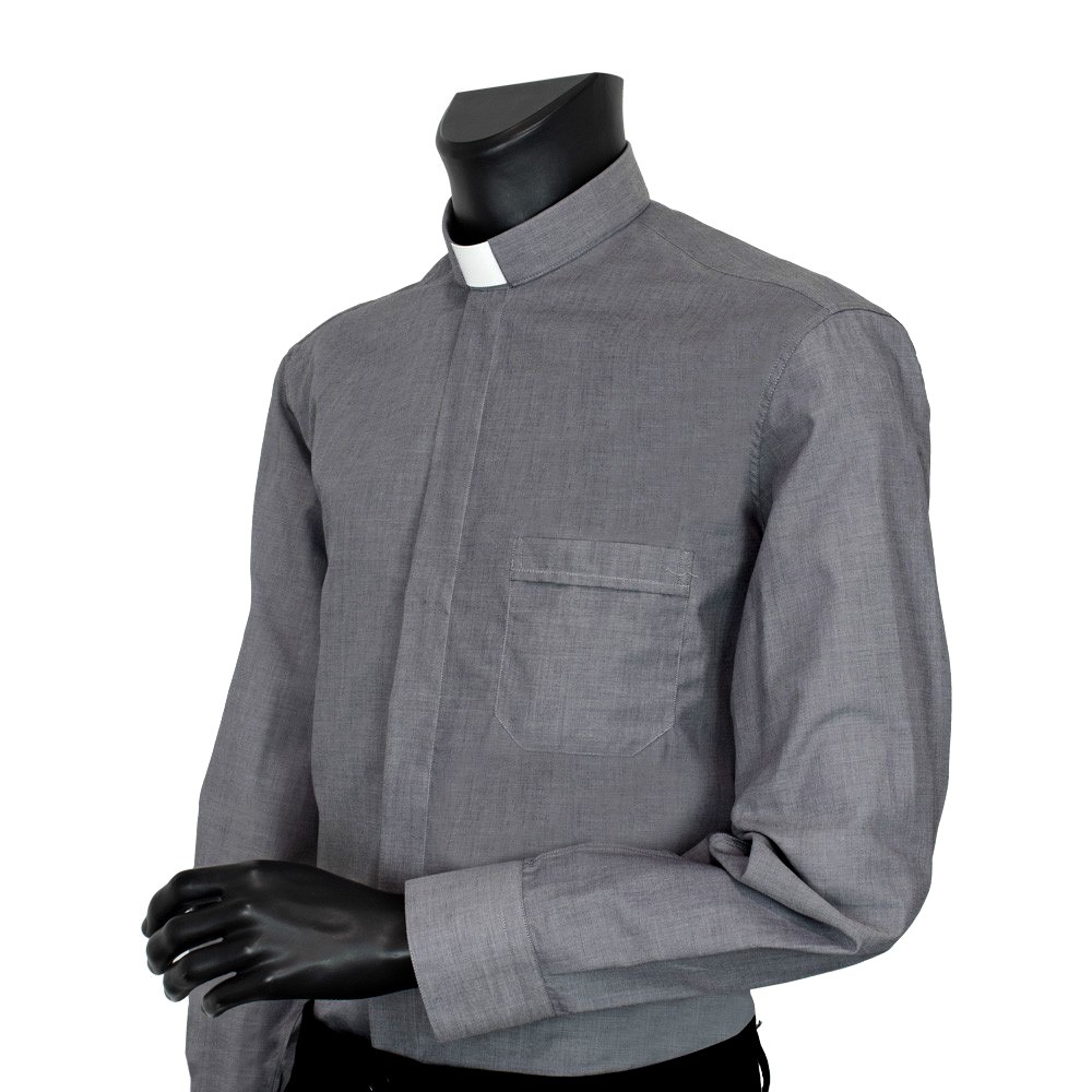 Camicia GRIGIO MEDIO con colletto clergy, disponibile dalla taglia 37 fino alla taglia 50.