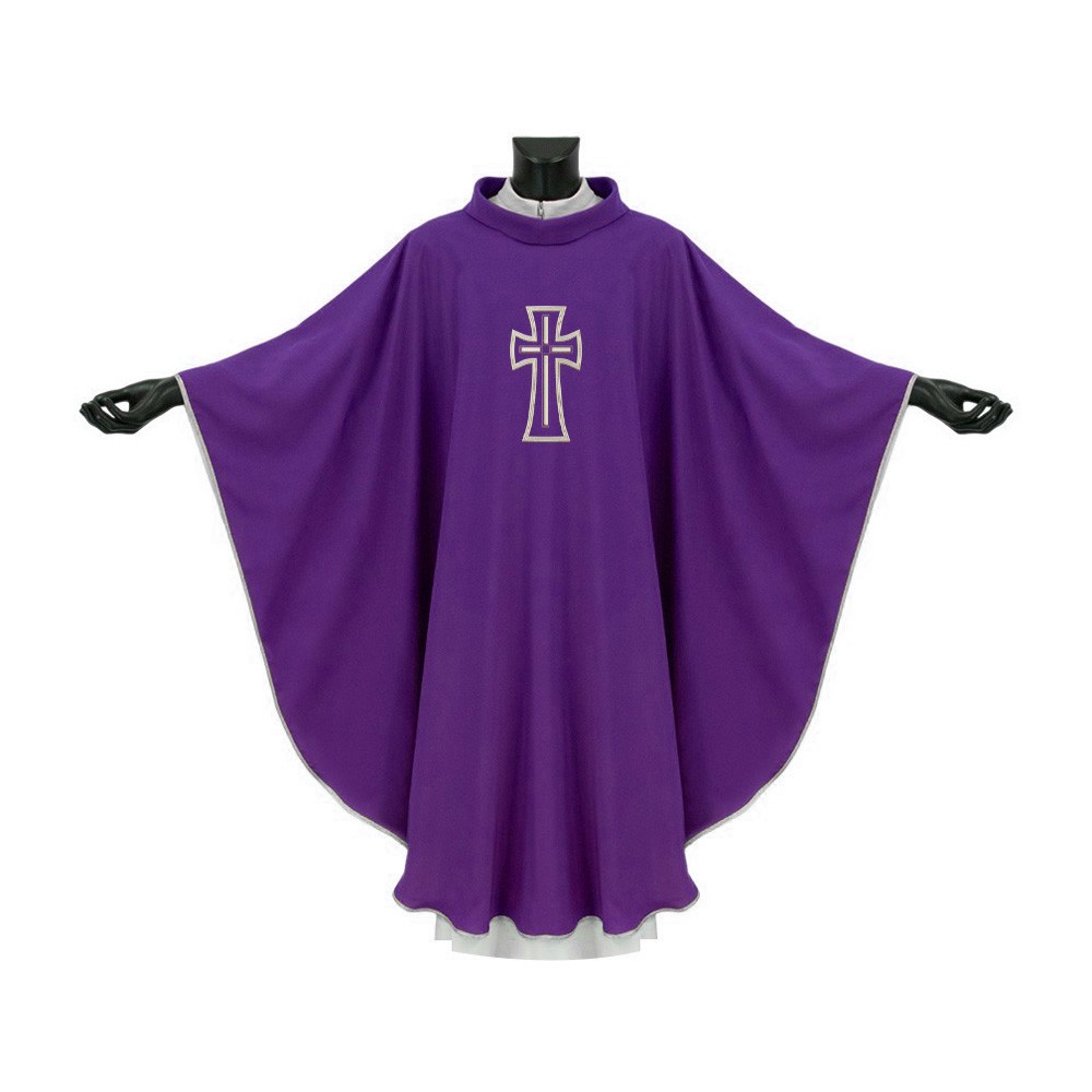 Questo paramento liturgico viola con collo ad anello è realizzato in tessuto 100% poliestere, ed è particolarmente indicato per l’uso ordinario.
