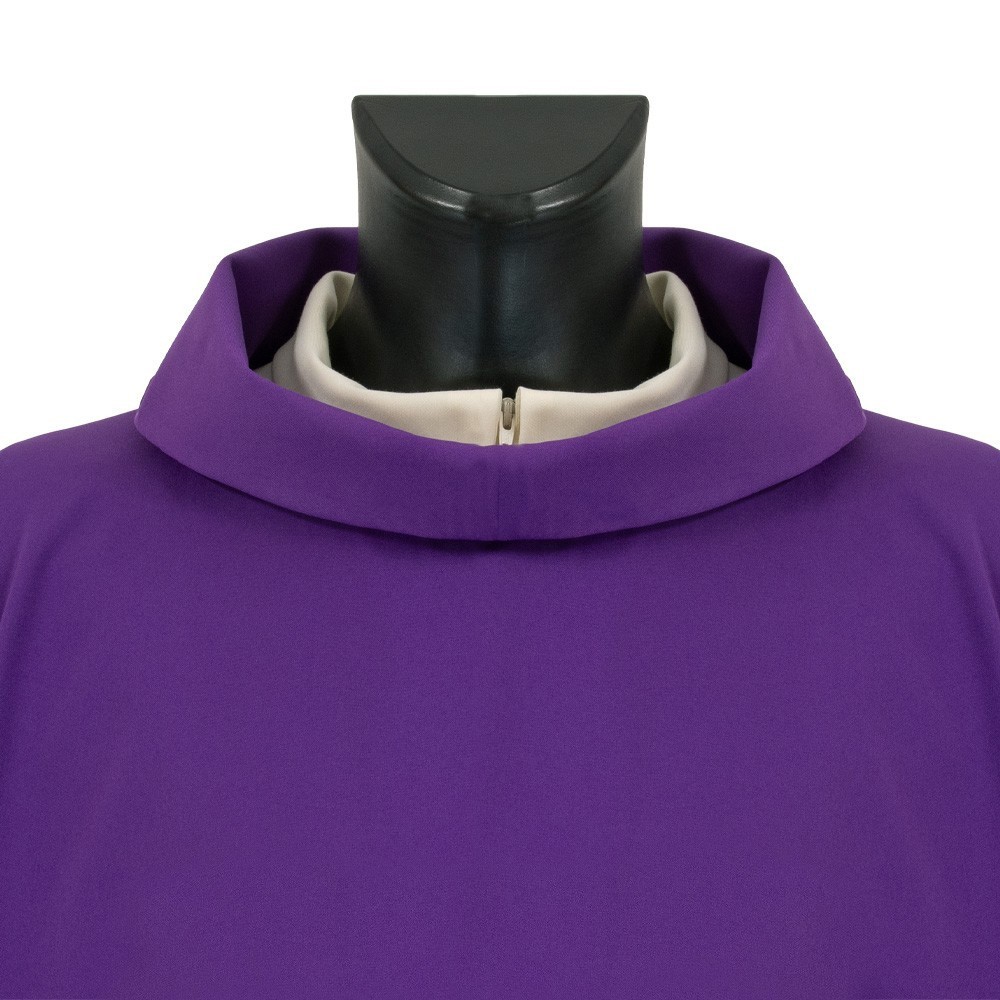 Casula sacerdotale viola confezionata in resistente tessuto poliestere.