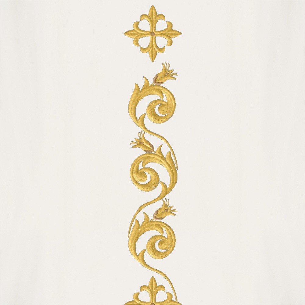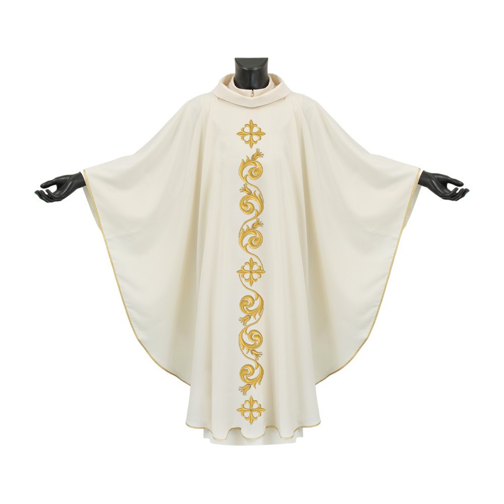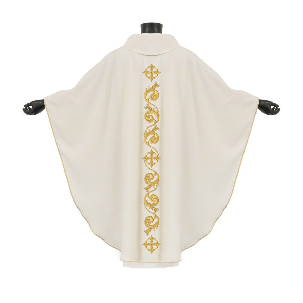 Questa veste liturgica si apprezza per il suo particolare e fine ricamo, presente avanti e dietro la casula. Questo grazioso ricamo rende il prodotto molto elegante. Il collo ad anello e il taglio ampio garantiscono una buona vestibilità.