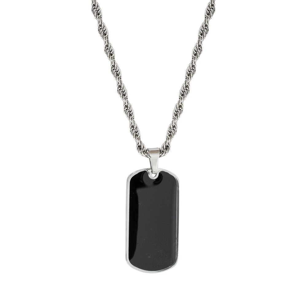 Realizzata in resistente acciaio 316L, questa collana custodisce un microchip con tecnologia Joylocker®, progettato per conservare i tuoi momenti più preziosi. La catena regolabile, lunga circa 50 cm + 5 cm, sorregge una placchetta con Texture geometrica nera e smalto nero sul retro, per un dettaglio unico e raffinato. La chiusura è a moschettone.