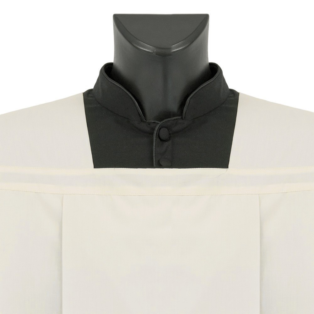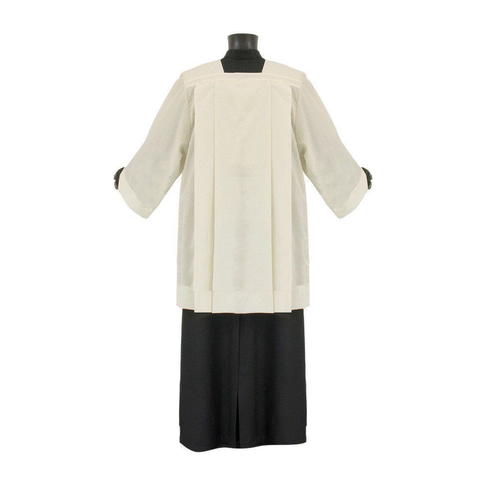 Cotta per sacerdote color avorio con collo romano, realizzata con piegoni.