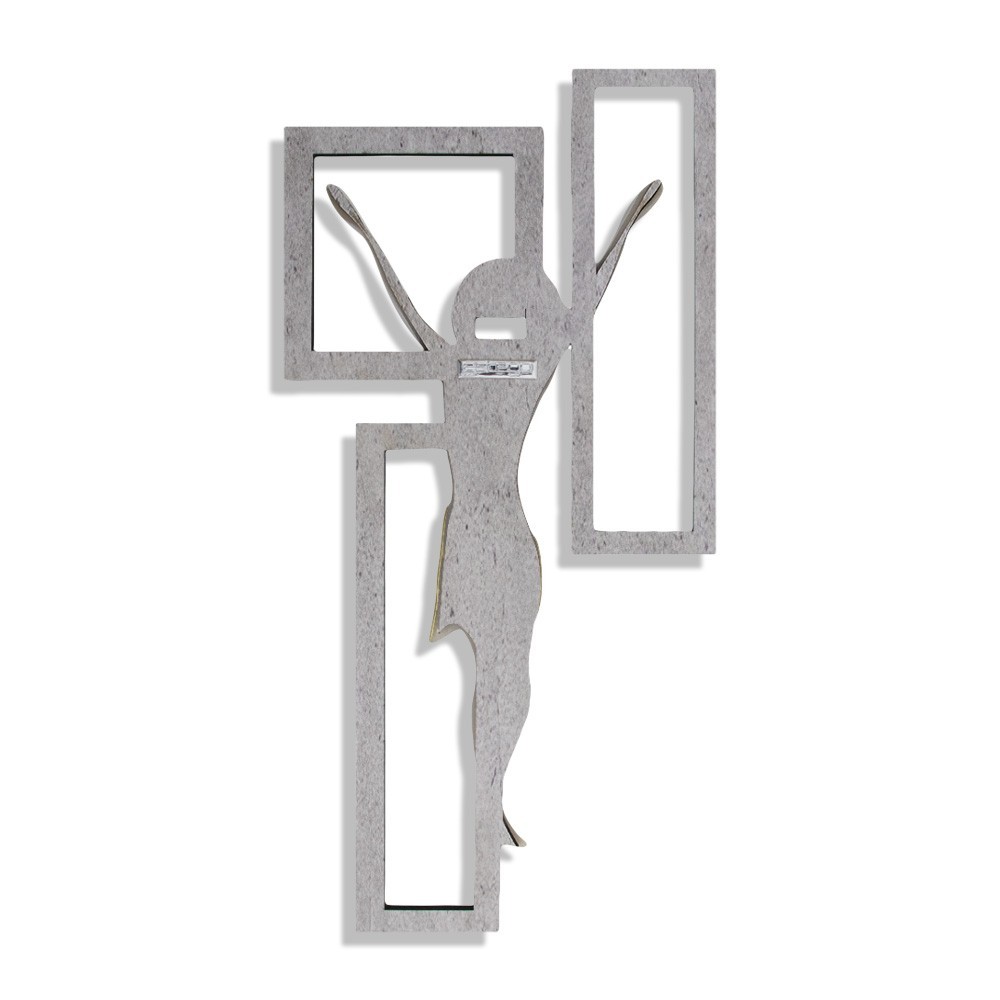Il crocifisso è in legno sagomato disponibile sia in grgio che in tortora.