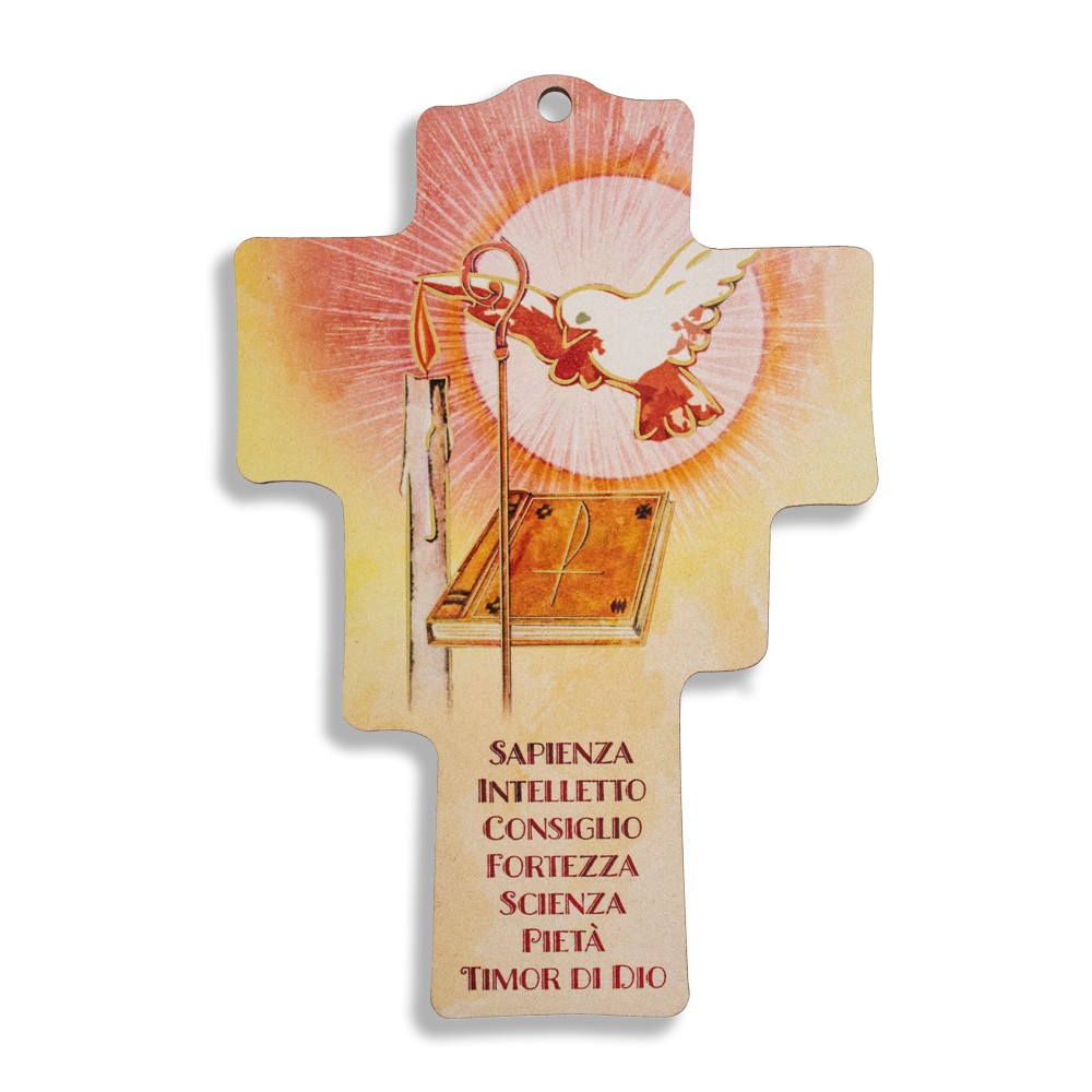 Consegna garantita in 24/48hCroce Cresima in plex con immagine della Colomba e dei 7 doni.