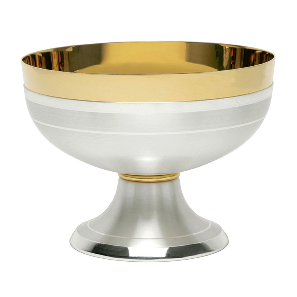 Patena offertoriale in ottone bicolore con finitura liscia e satinata. La patena eucaristica offertoriale è alta 10,5 cm e il diametro della coppa è 14 cm. Prodotto di ottima fattura eseguito interamente in Italia, garantendo la massima cura nei particolari.