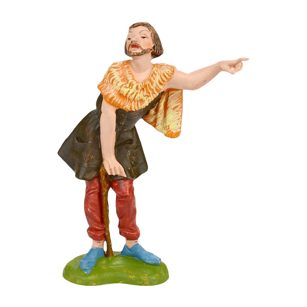 Statua FONTANINI: Pastore con piccolo bastone. La statua è adatta per presepe COLORATO da 10 cm. Realizzata con materiale infrangile dall'azienda Fontanini. Dipinta a mano. Prodotto 100% italiano.