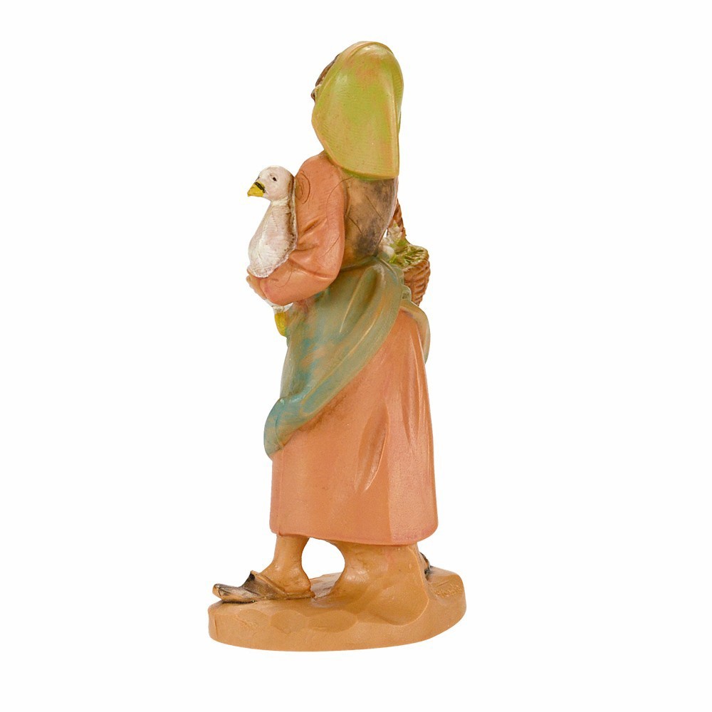 Statua Pastorella con cesto e oca. La statua è adatta per presepe da 11 cm.