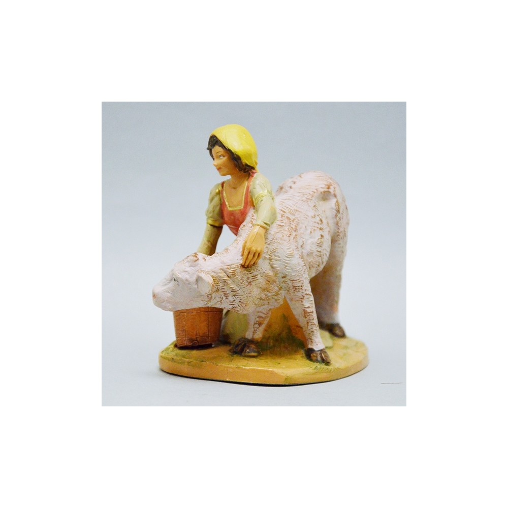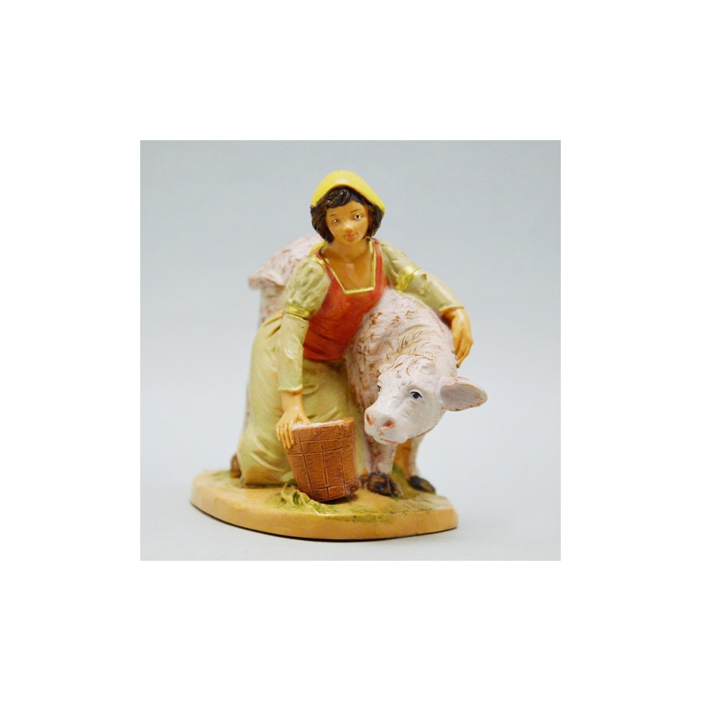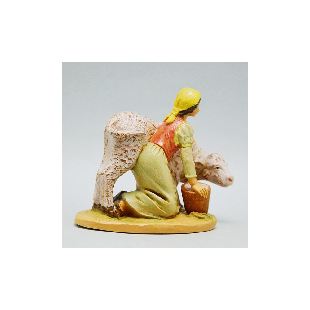 Pastorella Julia con mucca che munge per il Presepe Fontanini da 12 cm. Personaggio Edizione Limitata del 2013 Fontanini. Corredata di scatola litografata.