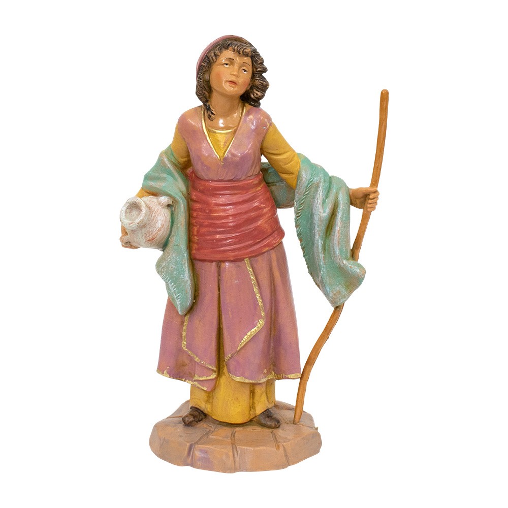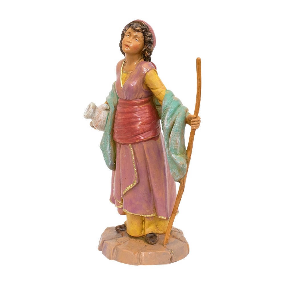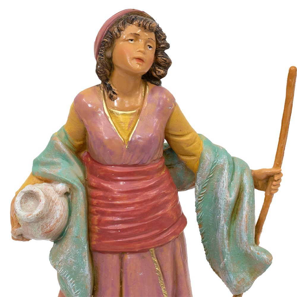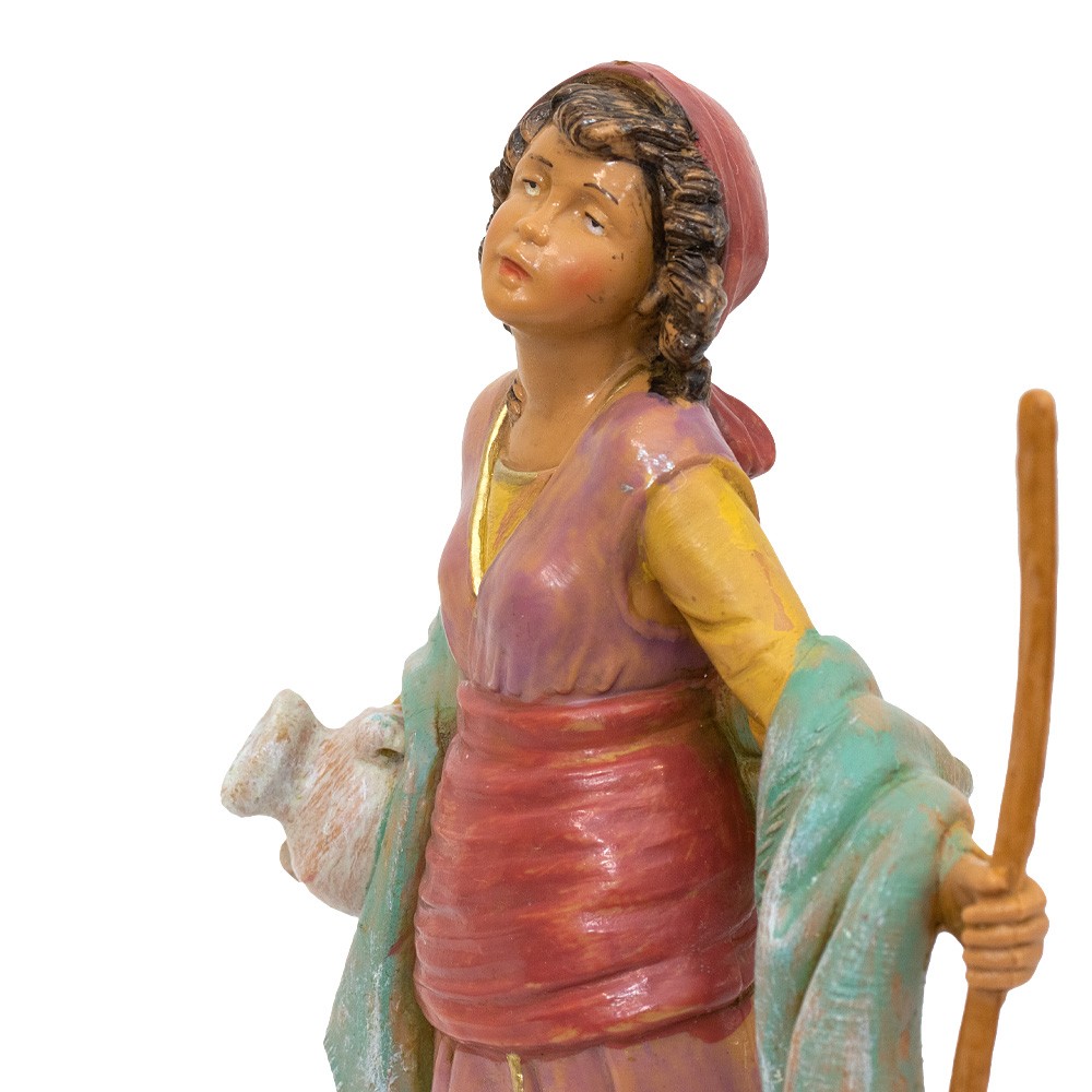 Statua pastorella per presepe Fontanini 19 cm, realizzata in PVC dipinta a mano con cura artigianale.