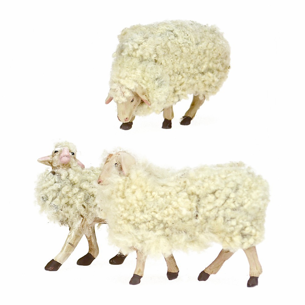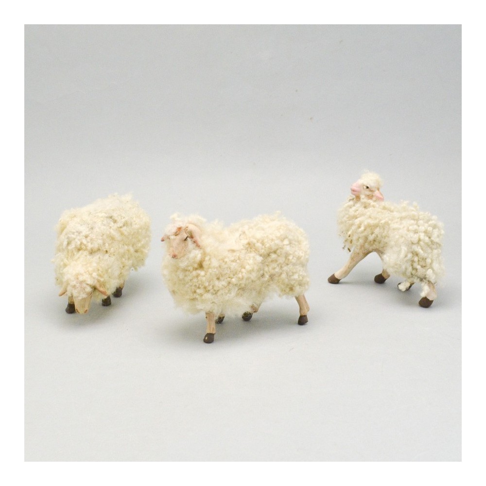 Gruppo di 3 Pecore rivestite con pura lana. Adatte per presepe napoletano da cm 30. Realizzate interamente a mano, con cura in ogni dettaglio. Made in Italy.