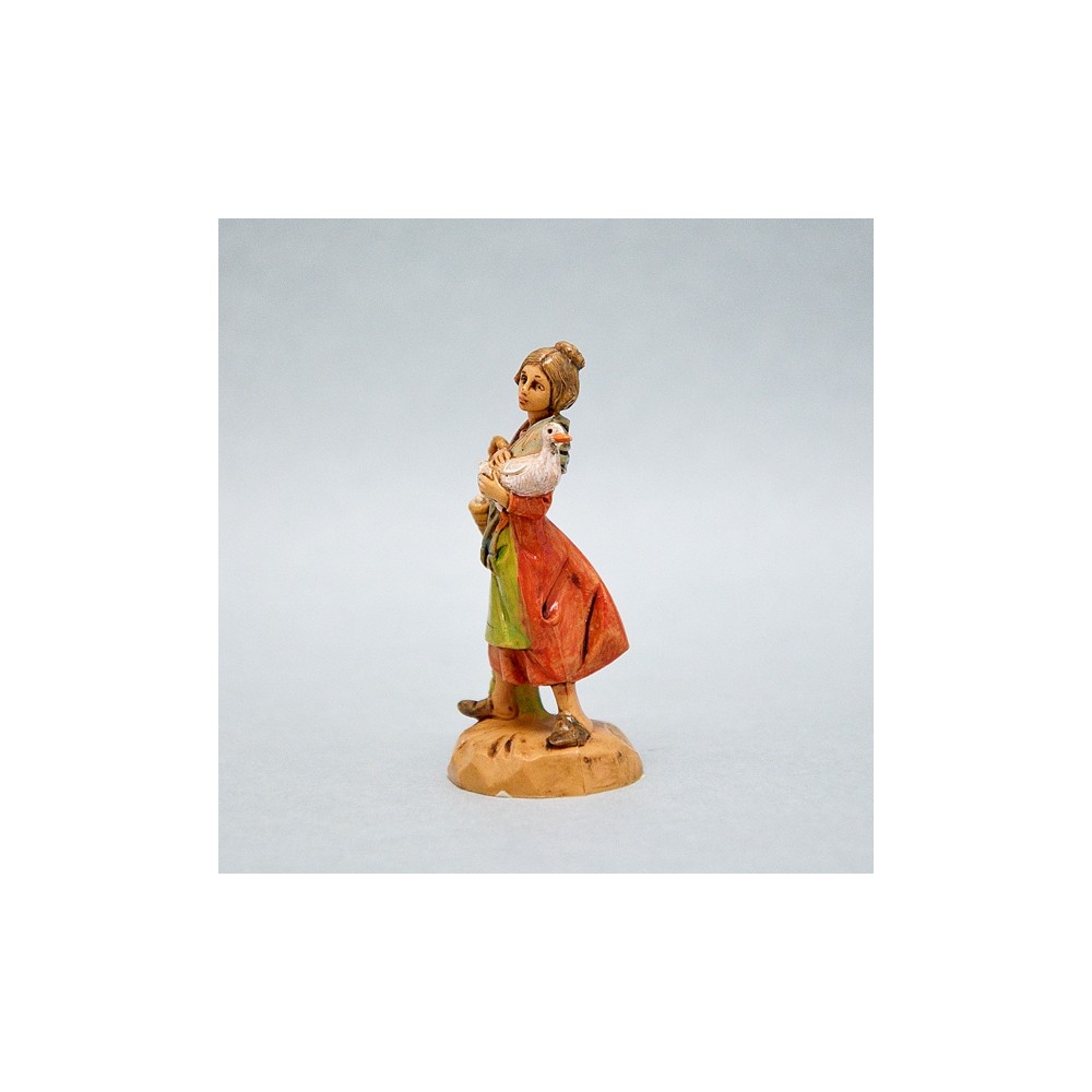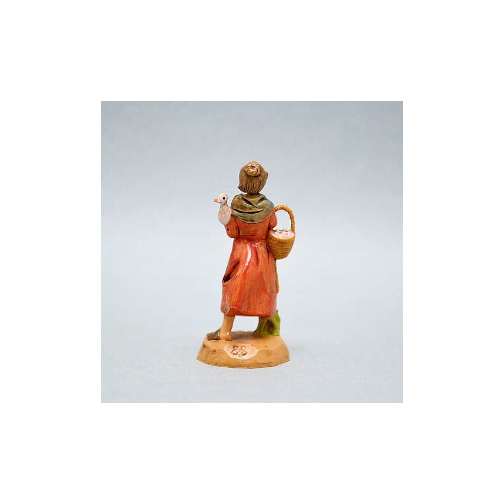 Pastorella che regge un'oca e un cesto di uova per il Presepe Fontanini da 6,5 cm.