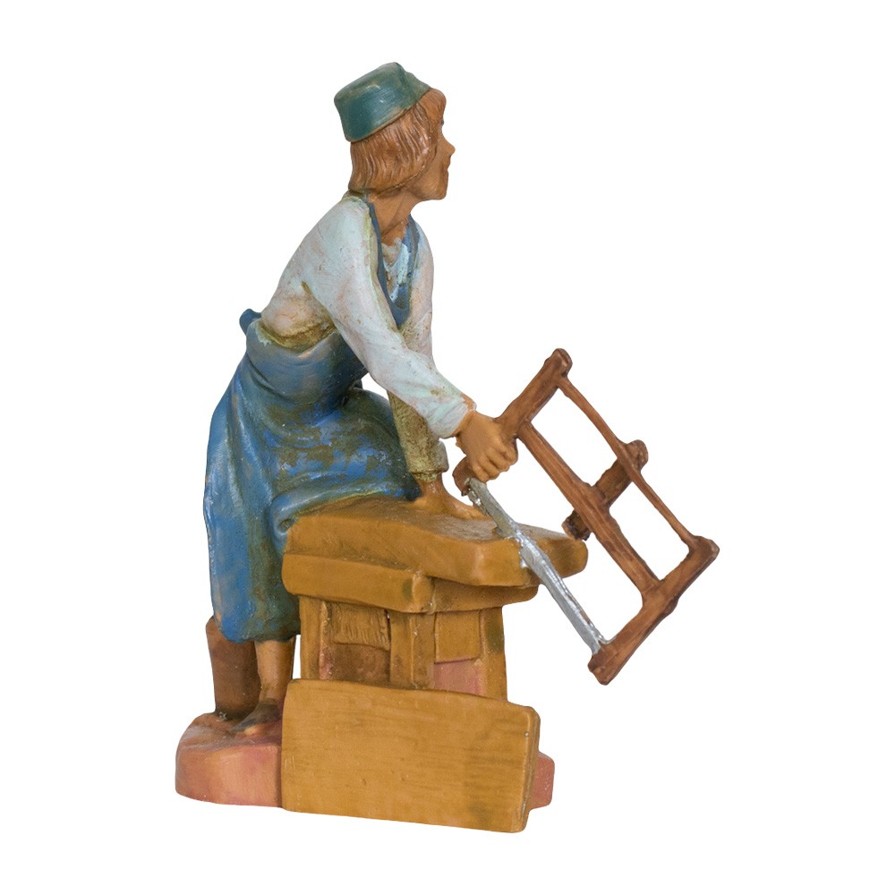 Falegname con attrezzo per Presepe Fontanini da 6,5 cm. Realizzato in PVC, dipinto interamente a mano. Colorazione: Tipo legno. Made in Italy.
