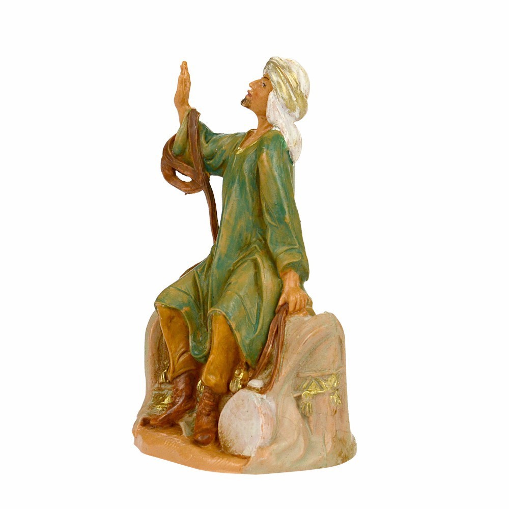 Statua Cammelliere seduto realizzata in PVC ed è adatta per presepe da 9,5 c