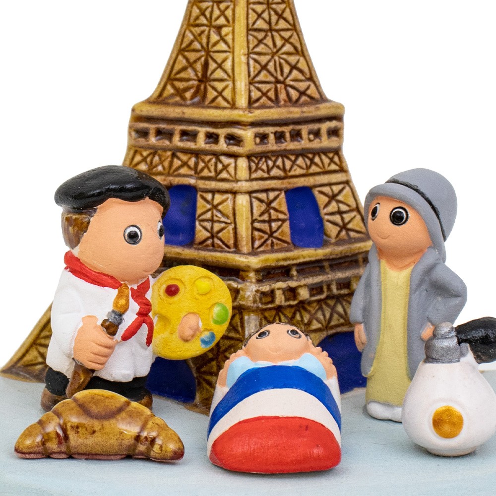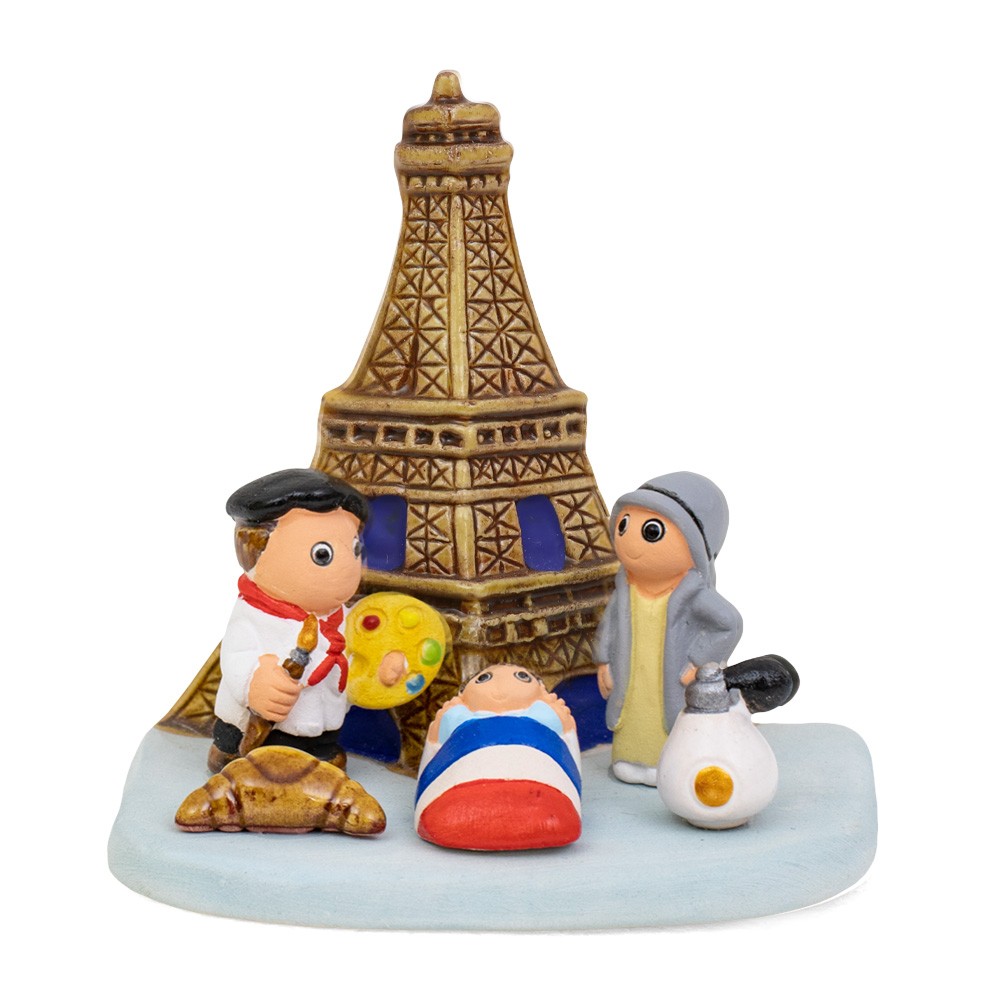 Mini presepe etnico della collezione presepi nel mondo, con raffigurazione del presepe di Parigi.