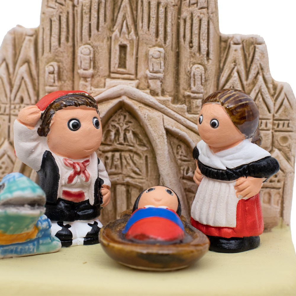 Mini presepe artigianale con raffigurazione Barcellona ideato per la collezione presepi del mondo.