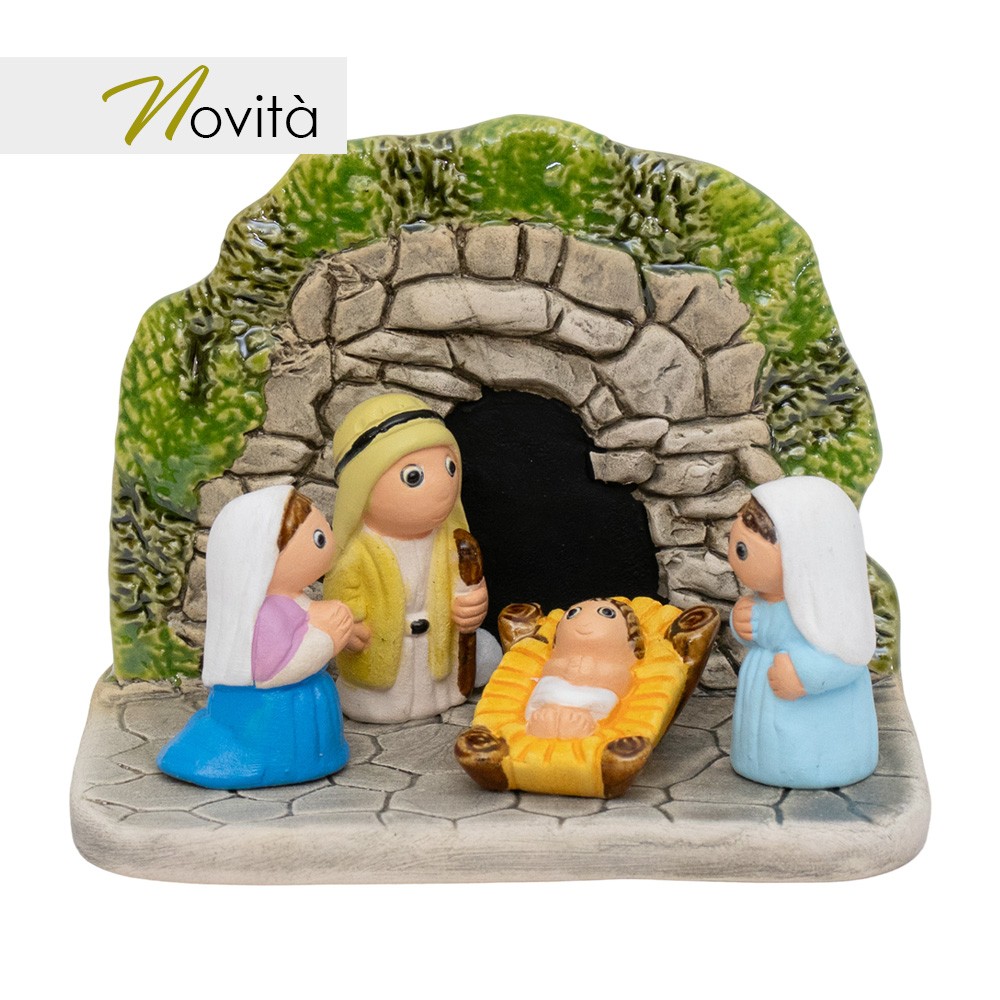 Il presepe è realizzato in ceramica semismaltata e dipinto finemente a mano.