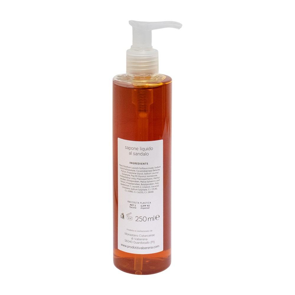 Sapone liquido per pelli delicate al profumo di Sandalo prodotto artigianalmente dalle suore del Monastero di Valserena, flacone da 250 ml.