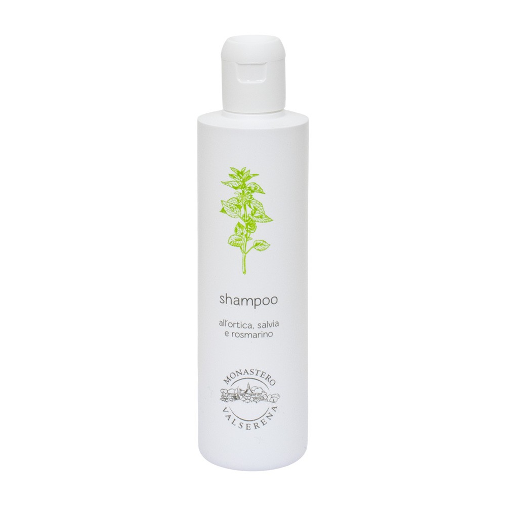 Questo shampo all'Ortica, Salva e Rosmarino (formato 250 ml) del Monastero di Valeserena è particolarmente indicato per capelli grassi e con forfora.