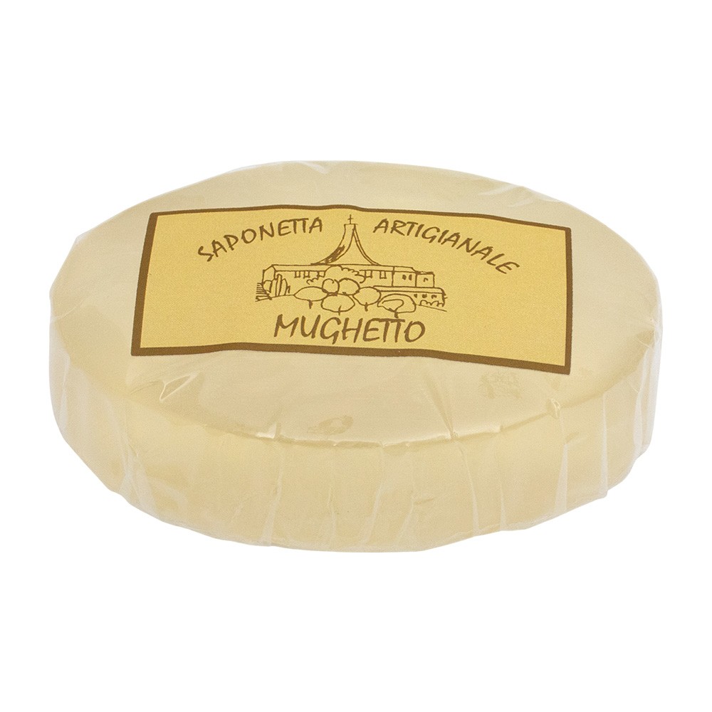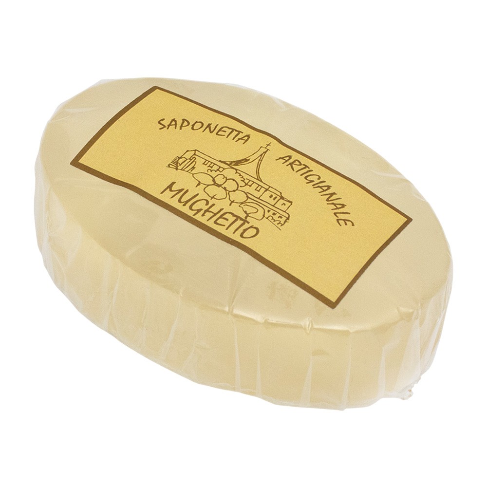 Saponetta artigianale al profumo di MUGHETTO in confezione da 100 grammi.