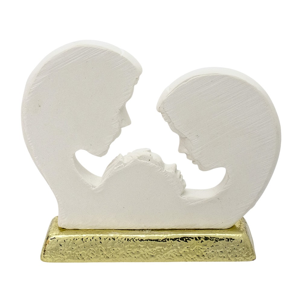 Carinissima statuetta con sagoma della Sacra Famiglia con base rettangolare dorata.