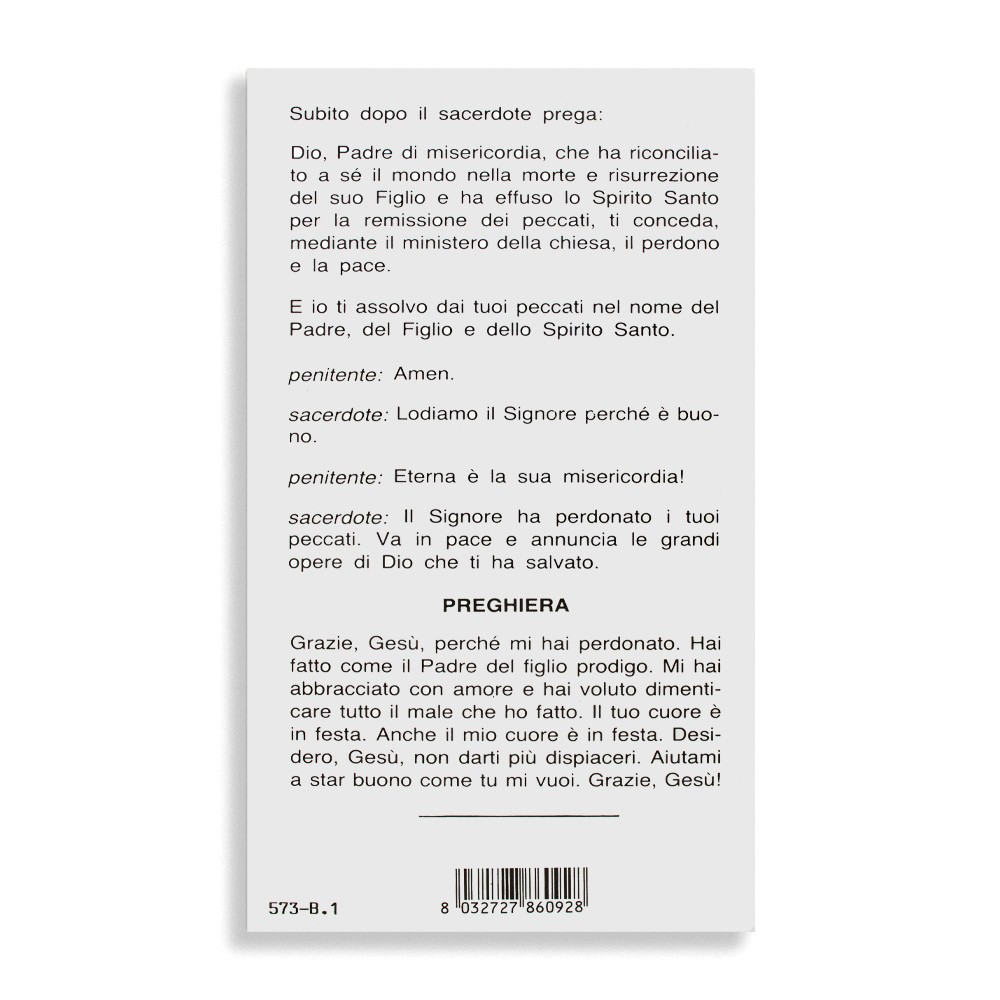 Al suo interno vi è stampata una piccola guida utilizzabile per il rito della penitenza durante la Messa.