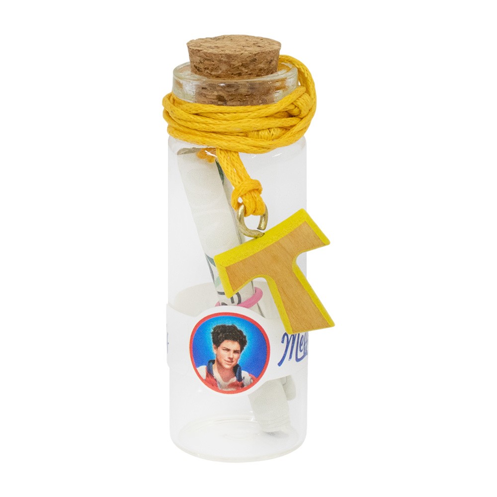 Flaconcino in vetro con messaggi assortiti e tau, perfetto anche come ricordino per i sacramenti.