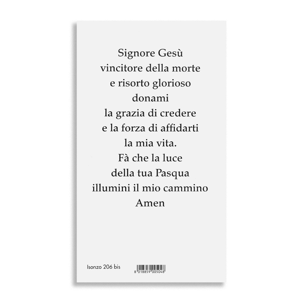 Santino che ritrae Gesù Risorto, confezionato in pacchetti da 100 pezzi.