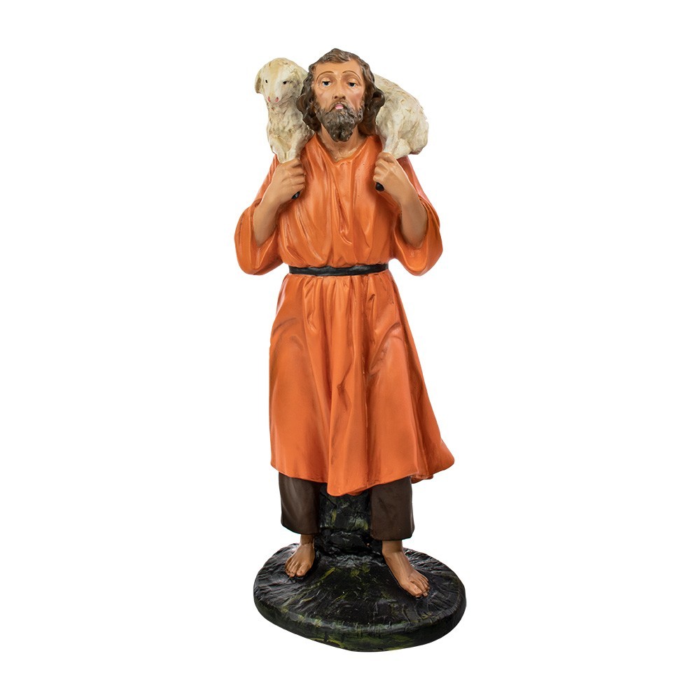 La statua raffigura un anziano pastore con pecorella in spalla. Realizzata in gesso colorato e dipinta rigorosamente a mano, da esperti artigiani della ditta Arte Barsanti. Articolo di alta qualità, curato e rifinito nei minimi particolari.