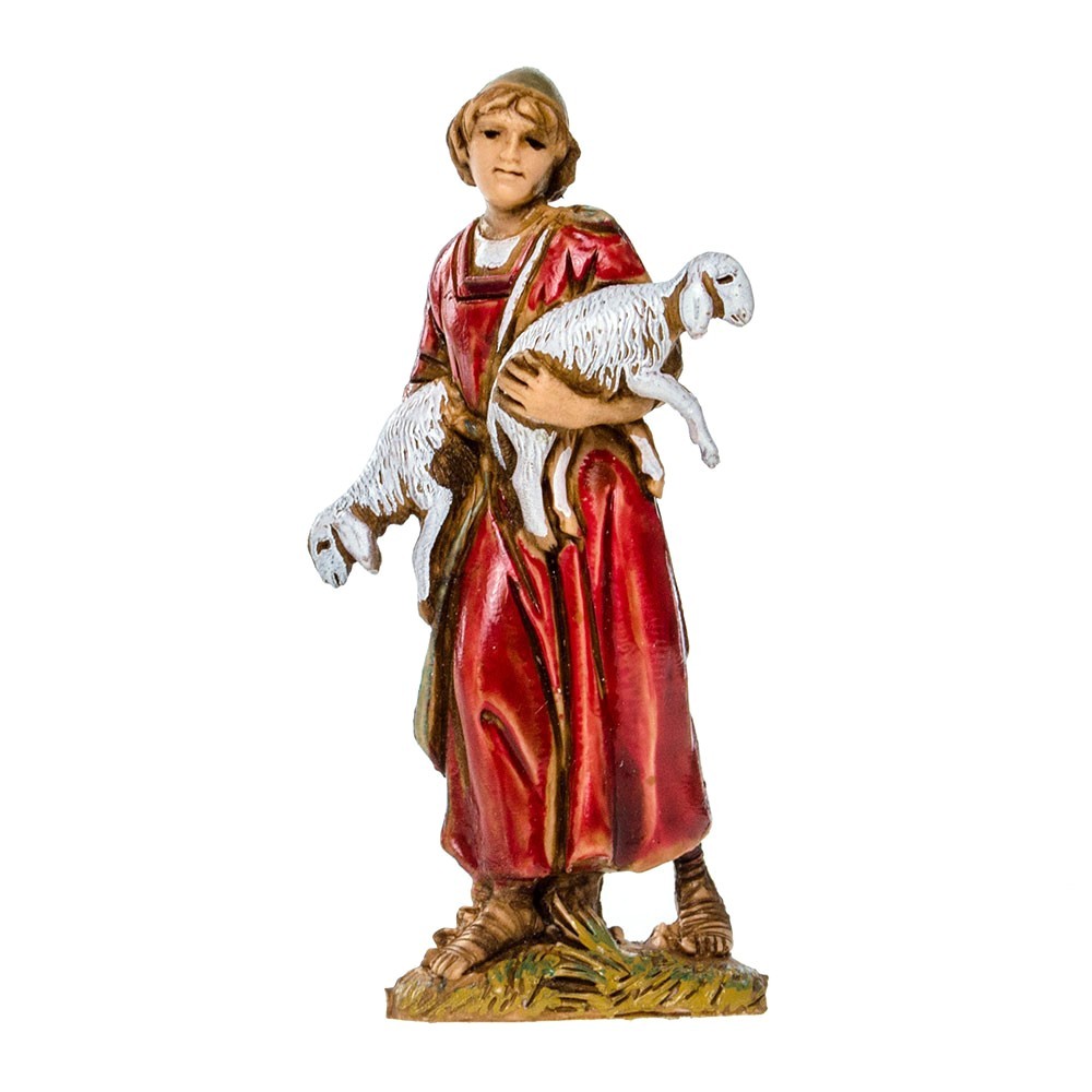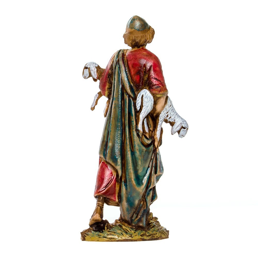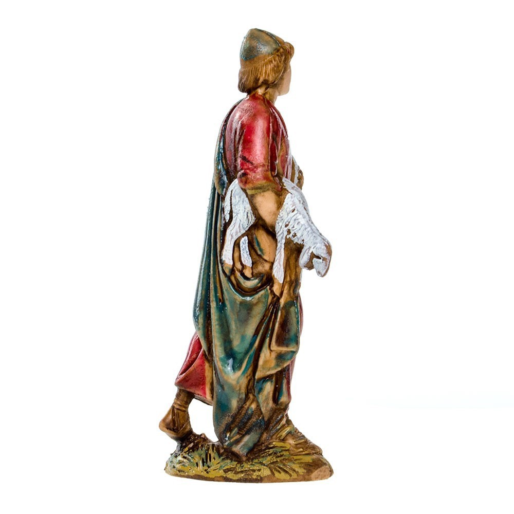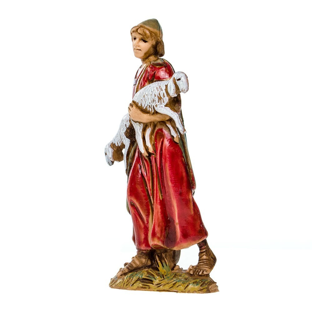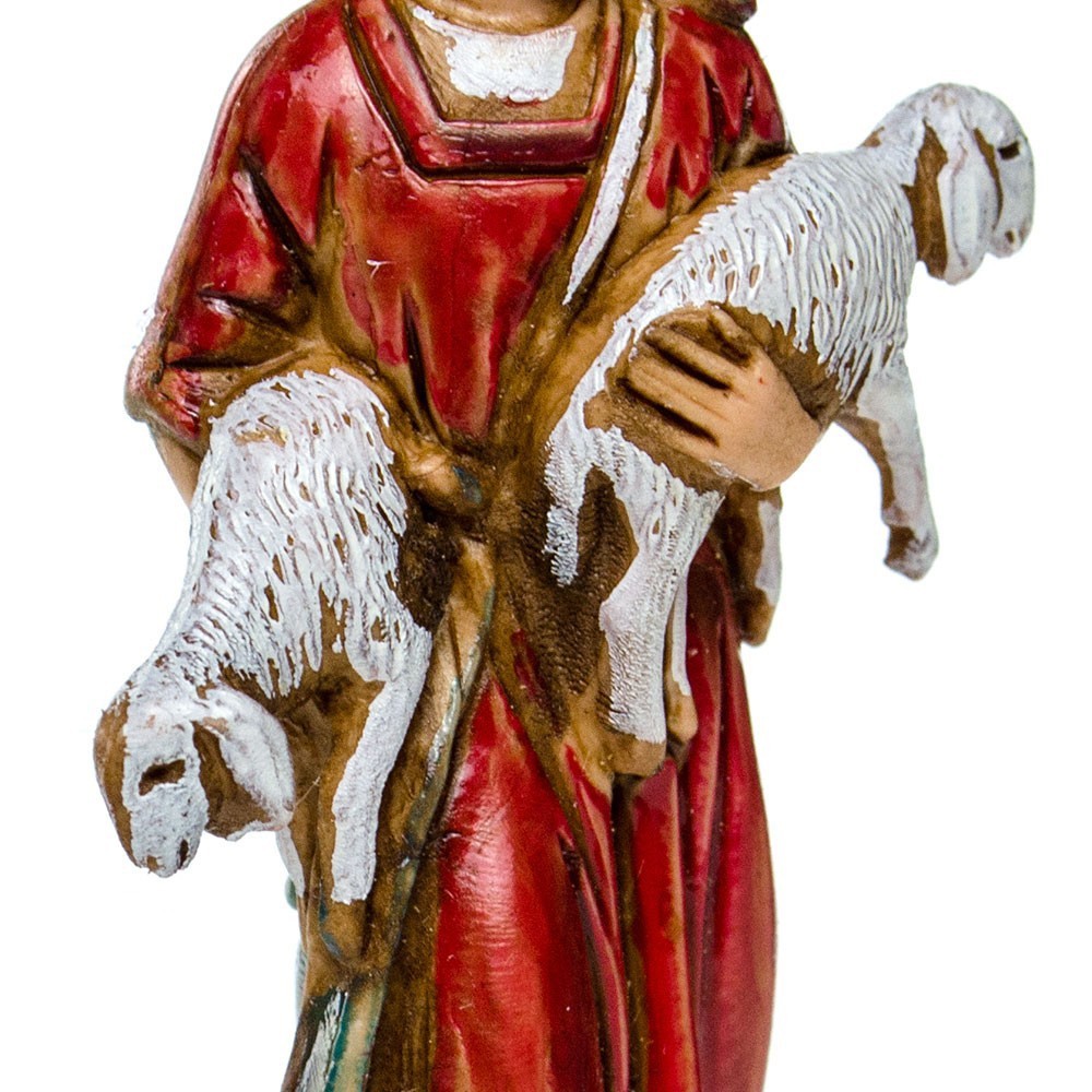 Pastore con Pecore del il Presepe Landi da 6,5 cm. Questo pastorello sta camminando con delle pecorelle in braccio. Realizzato in Italia in materiale PVC.