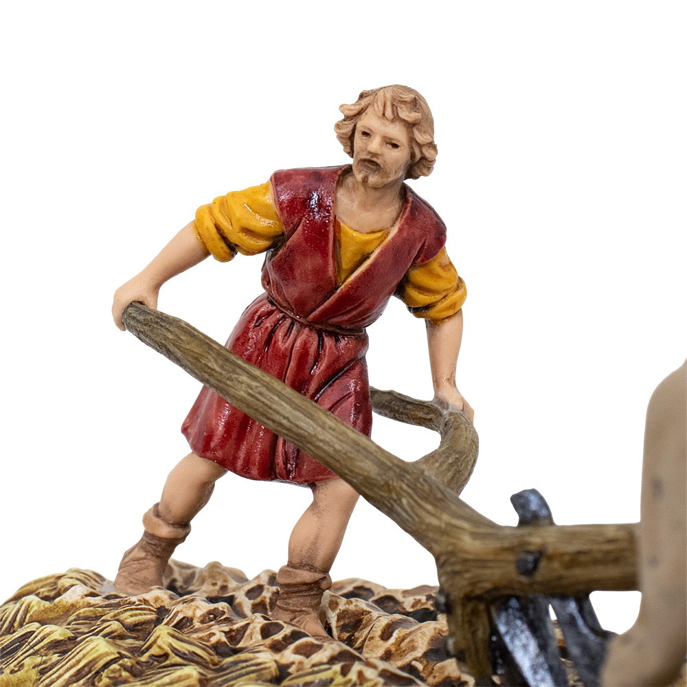 Scena aratro del presepe landi Moranduzzo, porporzionata a statue con altezza massim a6 cm.