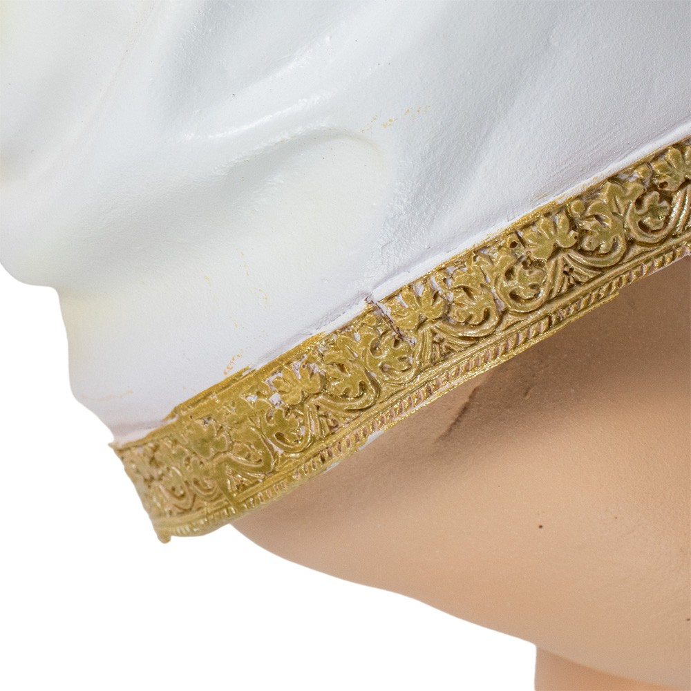 La statuetta si presenta con vestino bianco e inserti dorati.