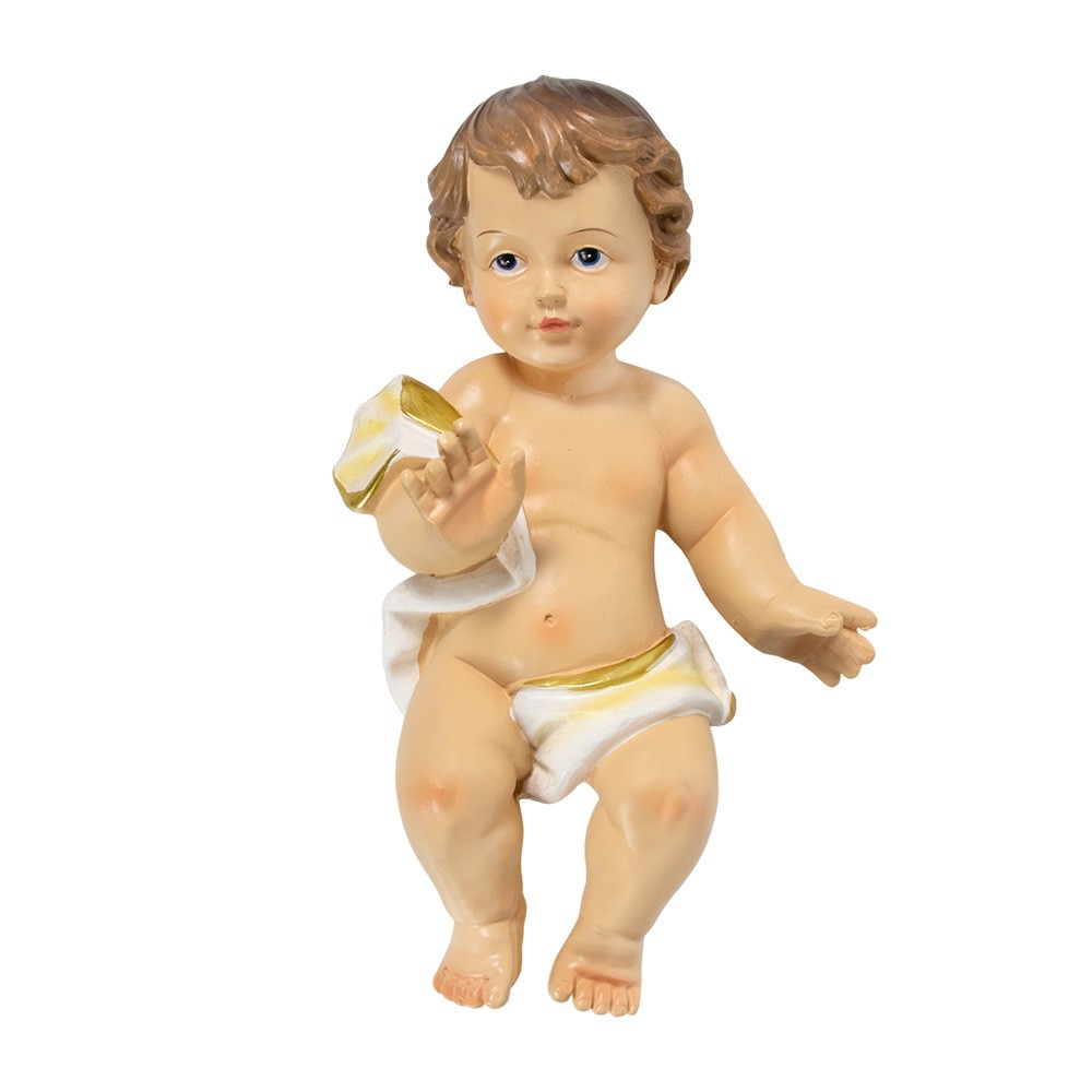 Statua di Gesù Bambino Benedicente realizzata in resina dipinta a mano.