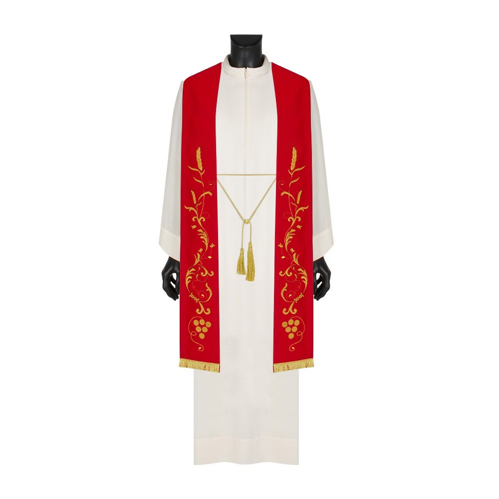 Stola sacerdotale rossa realizzata interamente su TELAIO A MANO, garantendo qualità e tradizione artigianale italiana.