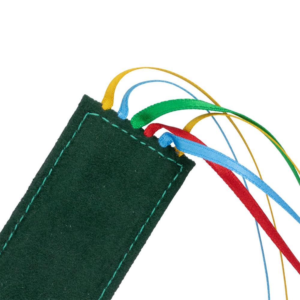 Segnalibro per breviario in velluto verde e 6 nastri in varie colorazioni.