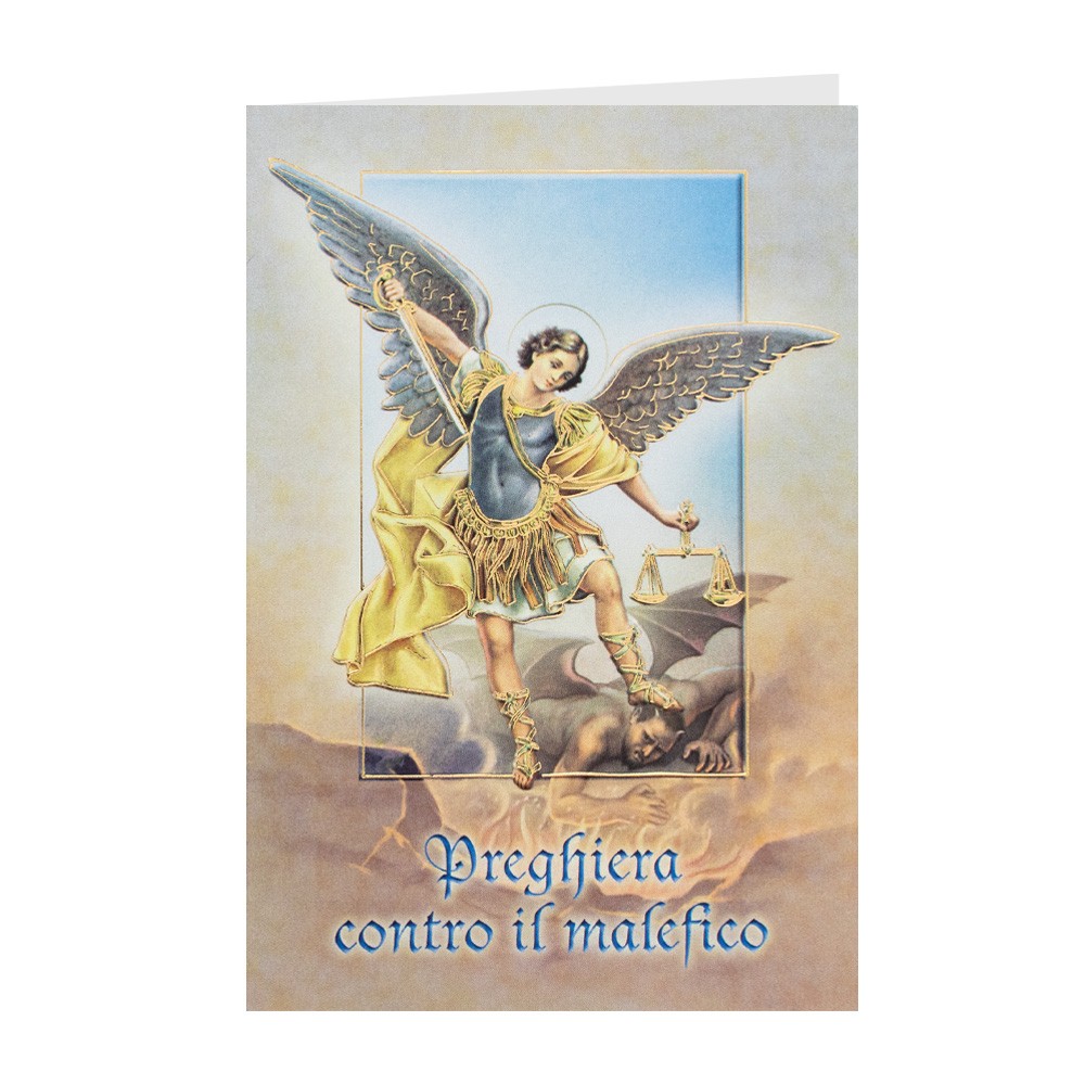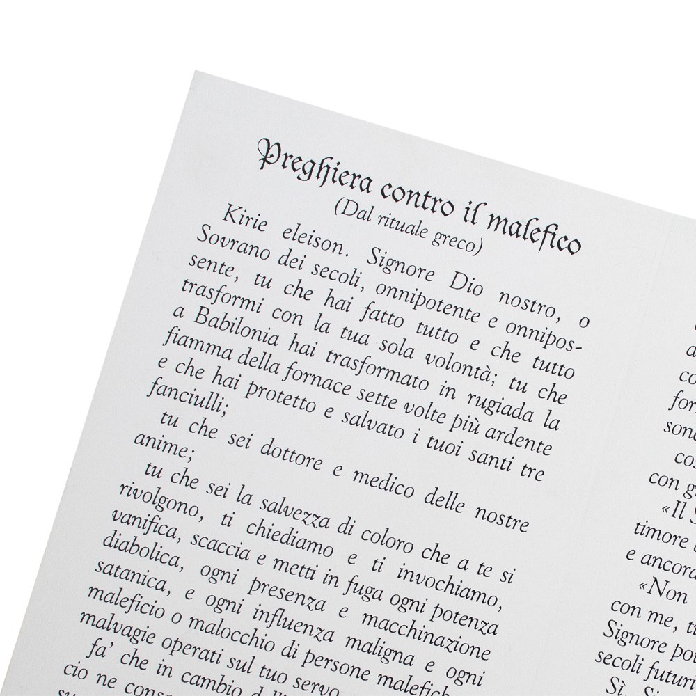 Cartoncino pieghevole con preghiera contro il malefico.